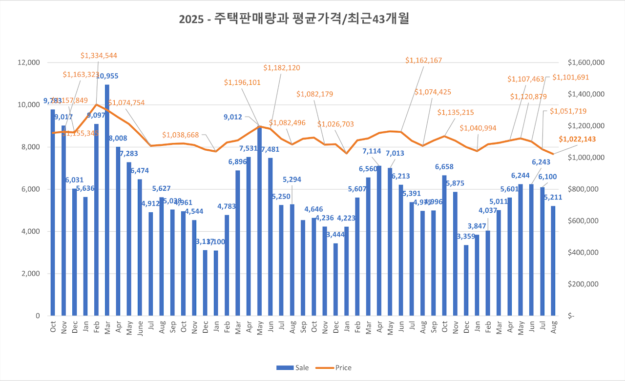 일단 평균주택가격이 큰폭으로 하락한 것을 확인할 수 있습니다. 그나마 하락폭은 지난 7월의 49000불에서 감소하여 29000불 하락으로 선방한 모습입니다만, 지난 4년 중에서 가장 낮은 평균주택가격입니다.