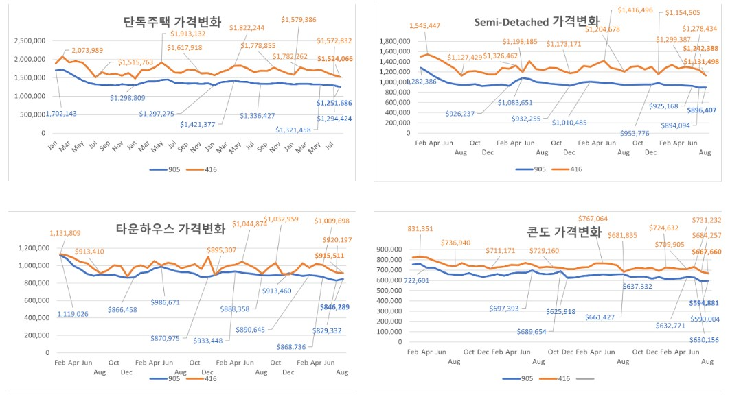 자, 우선 지난 8월에 발표된 광역토론토 주택거래 현황 통계자료를 분석한 내용을 요약해 드리고 싶습니다.