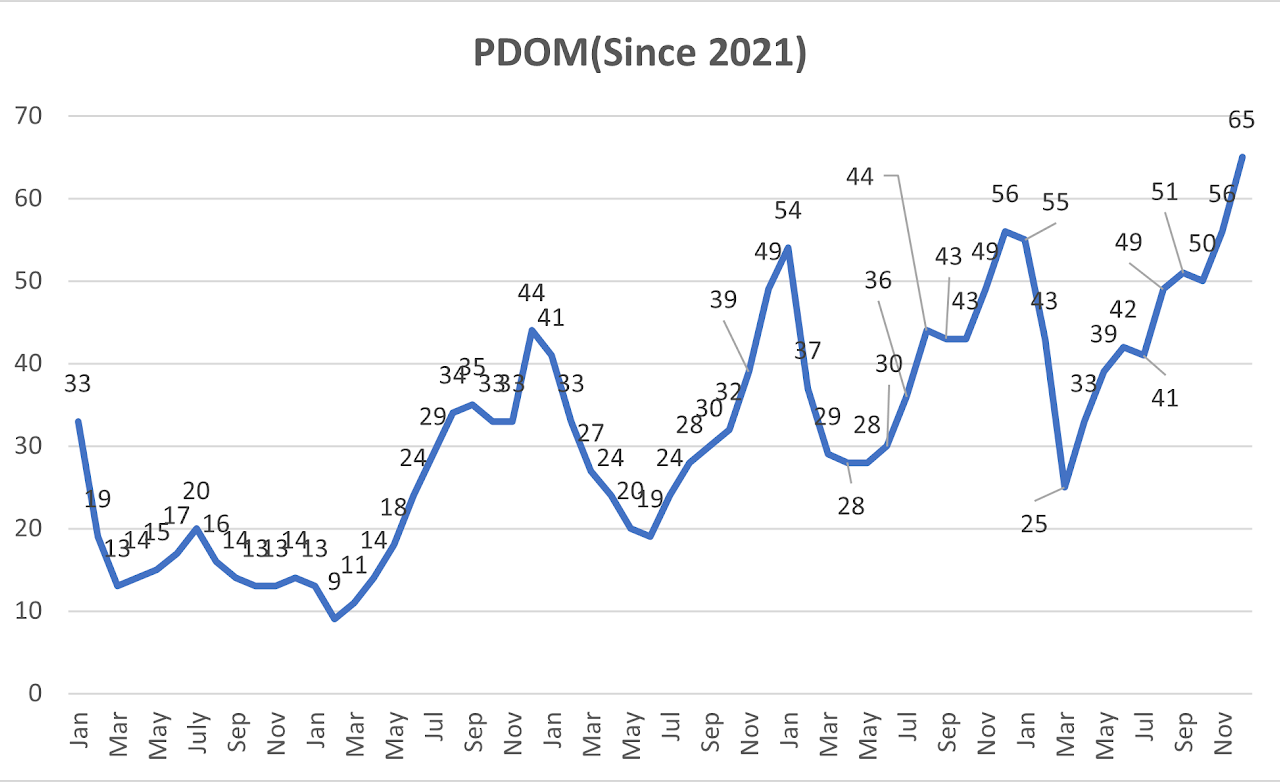 다시 거래동향 그래프로 돌아와서 보면, 매물들이 시장에서 체류하는 시간이 65일로 역대 최고치를 기록했습니다. 물론 지금까지의 흐름을 보면, 겨울 비수기인 12월에 매물의 체류시간이 가장 높아지는 것을 확인할 수 있습니다만, 매년 기록을 갱신하면서 계속해서 매물이 시장에 쌓아고 있는 모양세입니다. 즉, 시장에 새로나온 괜찮은 매물은 팔리지만, 하자가 있거나 비싼 매물은 계속해서 시장에 방치되고 있는 실정입니다.