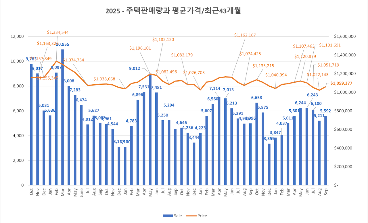 특히 평균주택가격은 2022년 고점 이후 가장 낮은 수치를 나타내었던 지난 8월에서 $37,234 상승하면서, 부동산시장의 성수기인 가을시작의 시작을 확인할 수 있었습니다.