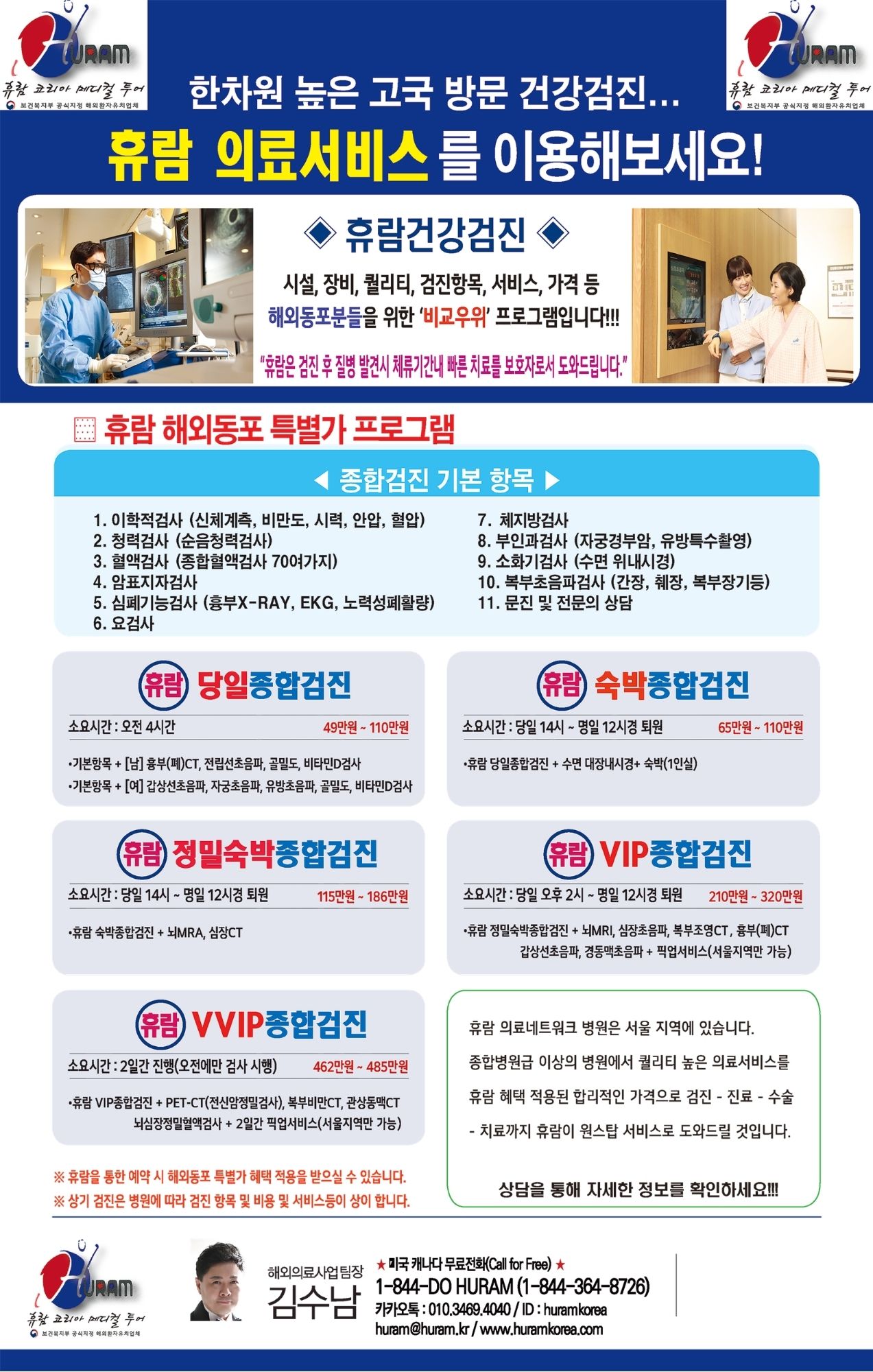 전립선암에 대한 궁금증(Q&A)및 그 밖의 휴람에 대한 궁금한 점이 있으시다면 휴람 해외의료사업부 김 수남팀장에게 문의하시면 자세한 안내를 도와드릴 것입니다.